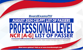 The complete list of passers and top scorers (top 10) for both professional and subprofessional levels of the August 2024 Civil Service Exam, also known as the Career Service Examination-Pen and Paper Test (CSE-PPT), is anticipated to be published online by October 20, 2024, or within a span of seventy (70) calendar days following the examination.